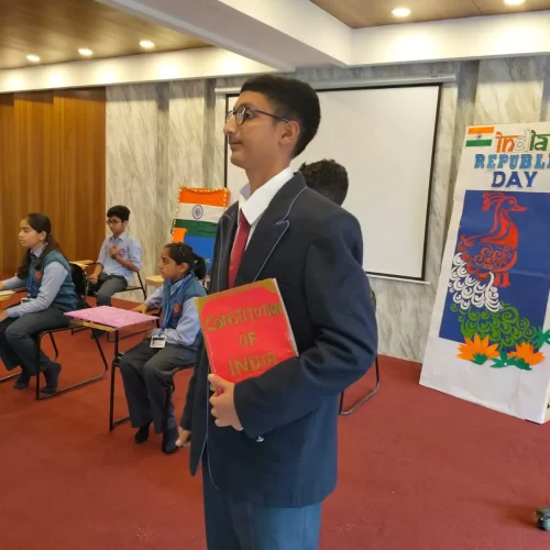 The highlight of the celebration was the Inter-House Skit Competition, where students beautifully portrayed themes based on the values, rights, and responsibilities enshrined in our Constitution. Their powerful performances conveyed strong messages of unity, democracy, and national integrity.